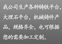 自從05年和我公司合作了感覺很好,我公司生產(chǎn)的劃線平臺(tái),焊接平臺(tái),T型槽平臺(tái),鉚焊平臺(tái),電機(jī)試驗(yàn)平臺(tái)等系列產(chǎn)品,是用于工件、設(shè)備檢測(cè)、劃線、裝配、焊接、組裝、鉚焊的平面基準(zhǔn)量具。